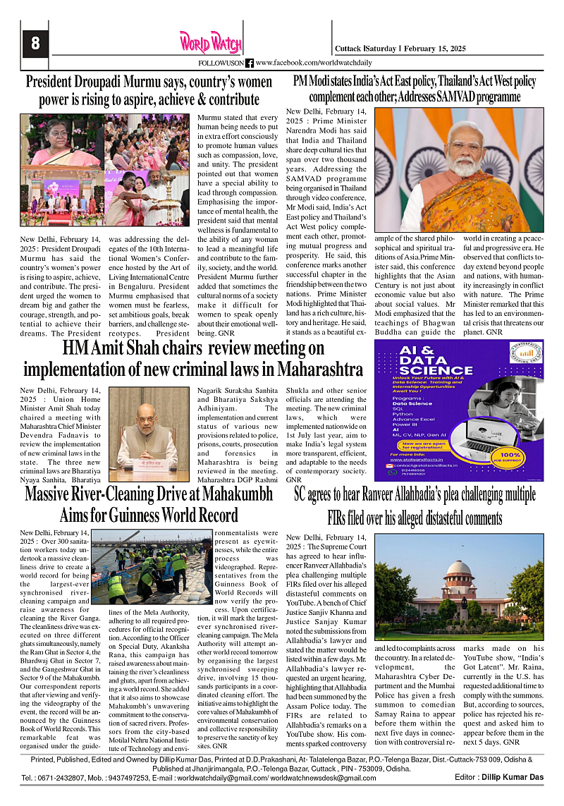 World Watch 15.02.2025 Page: 8 February 15, 2025 5 6 7 8 Page 1Page 2Page 3Page 4Page 5Page 6Page 7Page 8 × World Watch 15.02.2025 World Watch Daily 15.02.2025_page-0001World Watch Daily 15.02.2025_page-0002World Watch Daily 15.02.2025_page-0003World Watch Daily 15.02.2025_page-0004World Watch Daily 15.02.2025_page-0005World Watch Daily 15.02.2025_page-0006World Watch Daily 15.02.2025_page-0007World Watch Daily 15.02.2025_page-0008 << First << 8 >> Last >> Page no 1Page no 2Page no 3Page no 4Page no 5Page no 6Page no 7Page no 8