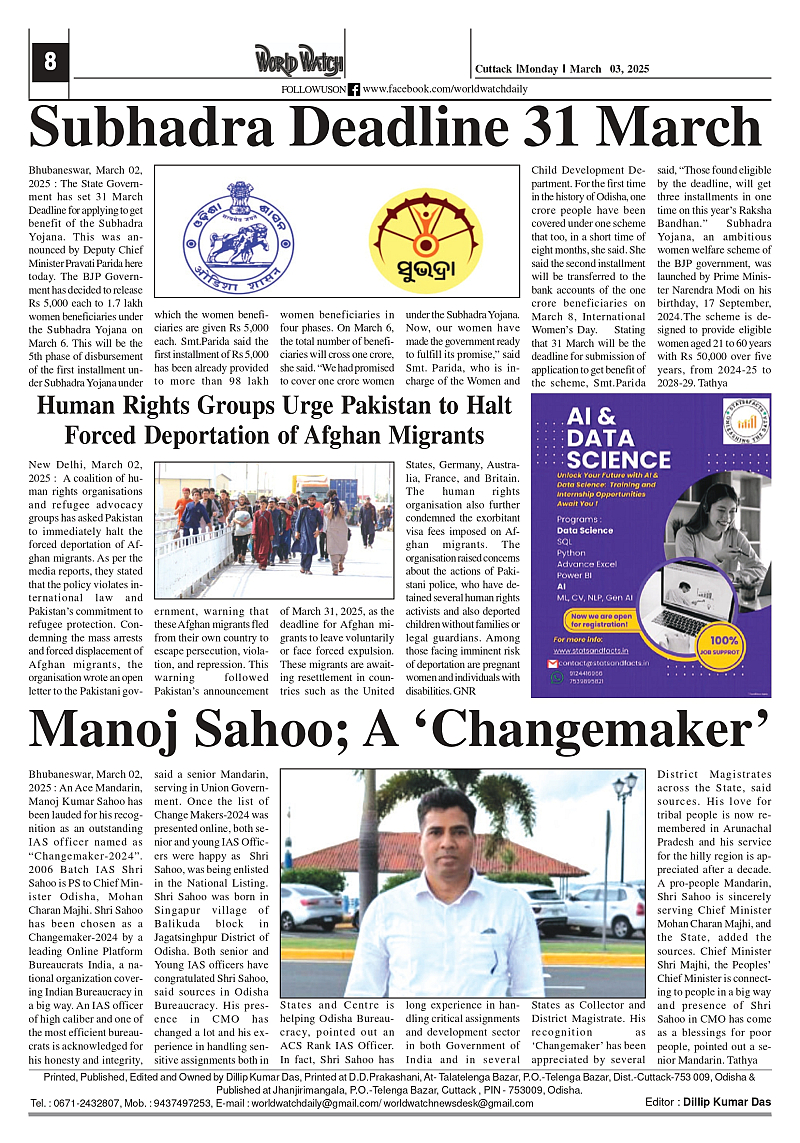World Watch 03.03.2025 Page: 8 March 03, 2025 5 6 7 8 Page 1Page 2Page 3Page 4Page 5Page 6Page 7Page 8 × World Watch 03.03.2025 World Watch Daily 03.03.2025-1_page-0001World Watch Daily 03.03.2025-1_page-0002World Watch Daily 03.03.2025-1_page-0003World Watch Daily 03.03.2025-1_page-0004World Watch Daily 03.03.2025-1_page-0005World Watch Daily 03.03.2025-1_page-0006World Watch Daily 03.03.2025-1_page-0007World Watch Daily 03.03.2025-1_page-0008 << First << 8 >> Last >> Page no 1Page no 2Page no 3Page no 4Page no 5Page no 6Page no 7Page no 8