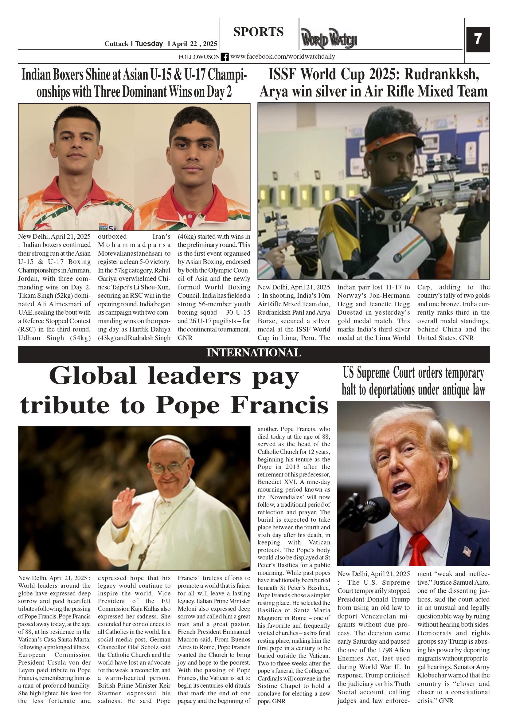 World Watch 22.04.2025 Page: 7 April 22, 2025 5 6 7 8 Page 1Page 2Page 3Page 4Page 5Page 6Page 7Page 8 × World Watch 22.04.2025 World Watch Daily 22.04.2025_page-0001World Watch Daily 22.04.2025_page-0002World Watch Daily 22.04.2025_page-0003World Watch Daily 22.04.2025_page-0004World Watch Daily 22.04.2025_page-0005World Watch Daily 22.04.2025_page-0006World Watch Daily 22.04.2025_page-0007World Watch Daily 22.04.2025_page-0008 << First << 7 >> Last >> Page no 1Page no 2Page no 3Page no 4Page no 5Page no 6Page no 7Page no 8