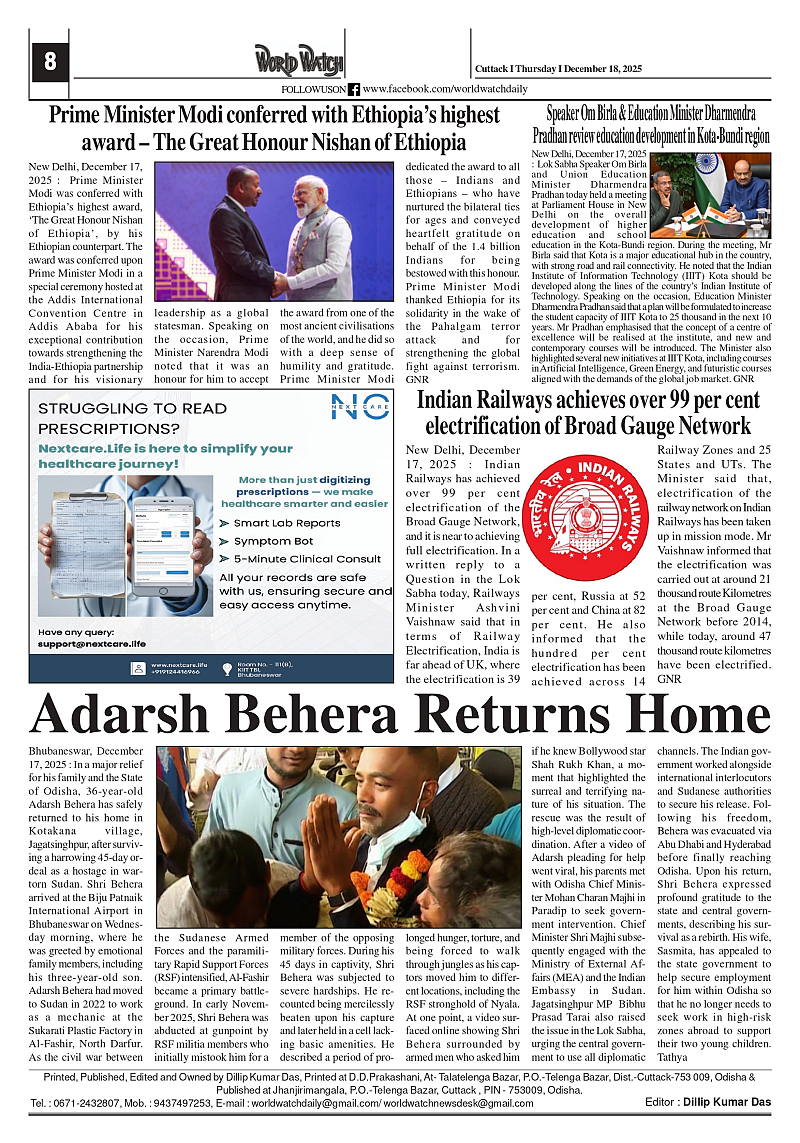 World Watch 18.12.2025 Page: 8 December 18, 2025 5 6 7 8 Page 1Page 2Page 3Page 4Page 5Page 6Page 7Page 8 × World Watch 18.12.2025 World Watch Daily 18-12-2025_page-0001World Watch Daily 18-12-2025_page-0002World Watch Daily 18-12-2025_page-0003World Watch Daily 18-12-2025_page-0004World Watch Daily 18-12-2025_page-0005World Watch Daily 18-12-2025_page-0006World Watch Daily 18-12-2025_page-0007World Watch Daily 18-12-2025_page-0008 << First << 8 >> Last >> Page no 1Page no 2Page no 3Page no 4Page no 5Page no 6Page no 7Page no 8