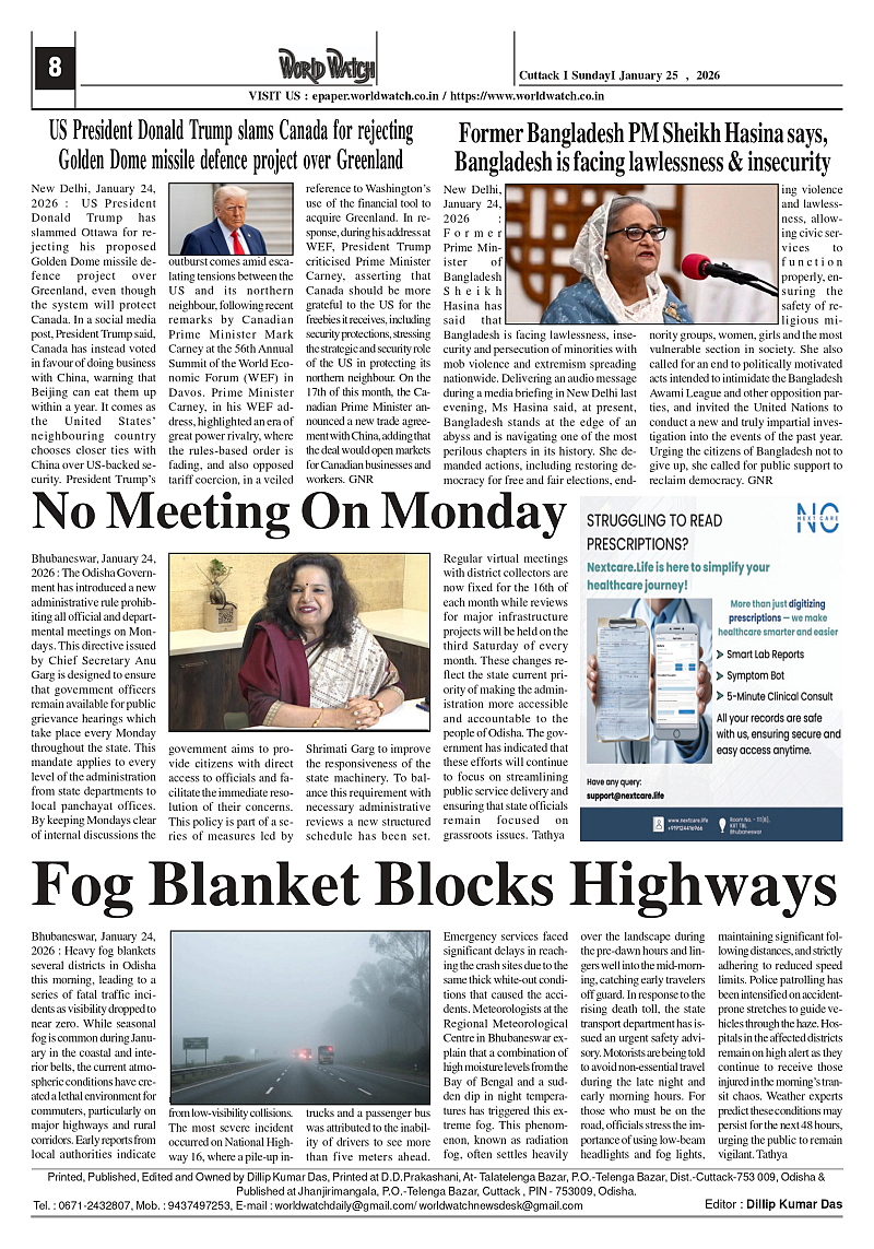World Watch 25.01.2026 Page: 8 January 25, 2026 5 6 7 8 Page 1Page 2Page 3Page 4Page 5Page 6Page 7Page 8 × World Watch 25.01.2026 World Watch Daily 25-01-2026-1_page-0001World Watch Daily 25-01-2026-1_page-0002World Watch Daily 25-01-2026-1_page-0003World Watch Daily 25-01-2026-1_page-0004World Watch Daily 25-01-2026-1_page-0005World Watch Daily 25-01-2026-1_page-0006World Watch Daily 25-01-2026-1_page-0007World Watch Daily 25-01-2026-1_page-0008 << First << 8 >> Last >> Page no 1Page no 2Page no 3Page no 4Page no 5Page no 6Page no 7Page no 8