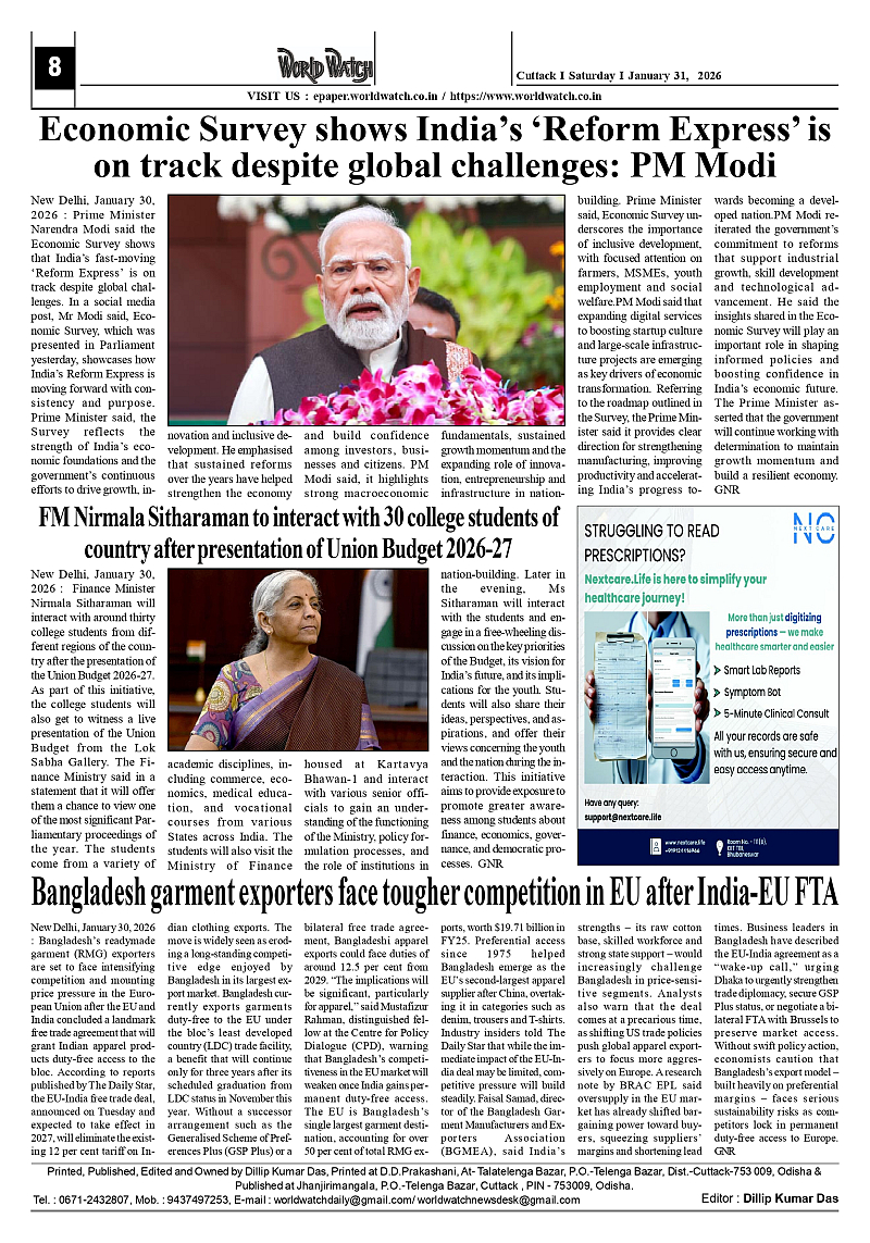 World Watch 31.01.2026 Page: 8 January 31, 2026 5 6 7 8 Page 1Page 2Page 3Page 4Page 5Page 6Page 7Page 8 × World Watch 31.01.2026 World Watch Daily 31-01-2026_page-0001World Watch Daily 31-01-2026_page-0002World Watch Daily 31-01-2026_page-0003World Watch Daily 31-01-2026_page-0004World Watch Daily 31-01-2026_page-0005World Watch Daily 31-01-2026_page-0006World Watch Daily 31-01-2026_page-0007World Watch Daily 31-01-2026_page-0008 << First << 8 >> Last >> Page no 1Page no 2Page no 3Page no 4Page no 5Page no 6Page no 7Page no 8