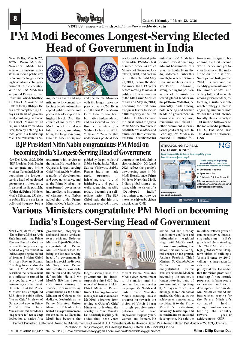 World Watch 23.03.2026 Page: 8 March 23, 2026 5 6 7 8 Page 1Page 2Page 3Page 4Page 5Page 6Page 7Page 8 × World Watch 23.03.2026 World Watch Daily 23-03-2026_page-0001World Watch Daily 23-03-2026_page-0002World Watch Daily 23-03-2026_page-0003World Watch Daily 23-03-2026_page-0004World Watch Daily 23-03-2026_page-0005World Watch Daily 23-03-2026_page-0006World Watch Daily 23-03-2026_page-0007World Watch Daily 23-03-2026_page-0008 << First << 8 >> Last >> Page no 1Page no 2Page no 3Page no 4Page no 5Page no 6Page no 7Page no 8