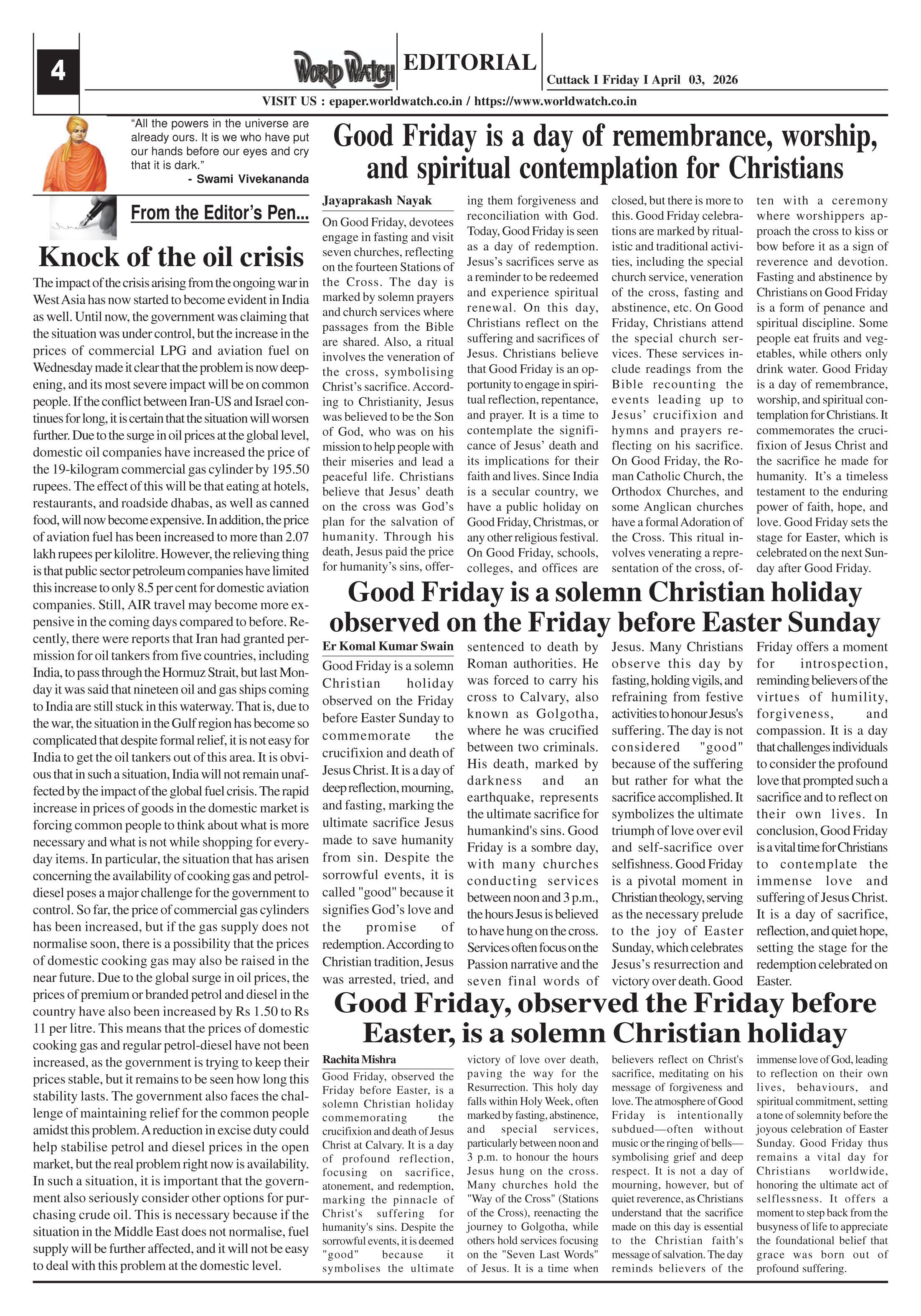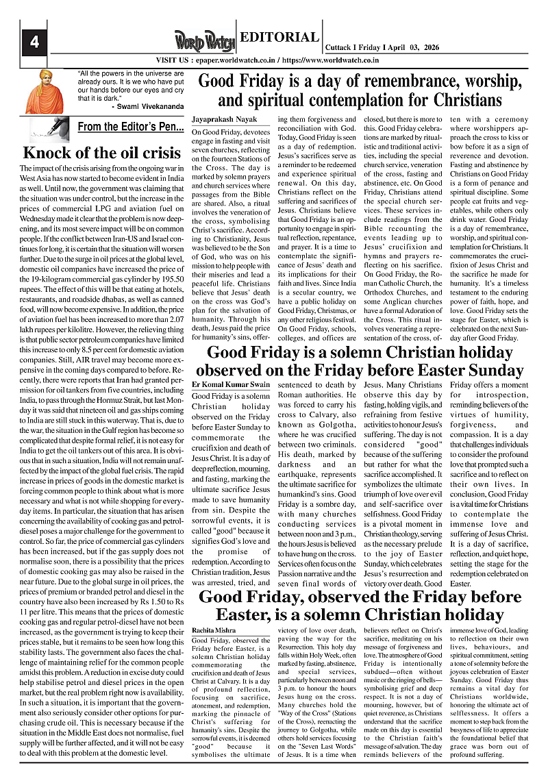 World Watch-03-04-2026 Page: 4 April 03, 2026 Tensions in West Asia continue 2 3 4 5 Page 1Page 2Page 3Page 4Page 5Page 6Page 7Page 8 × World Watch-03-04-2026 World Watch Daily 03-04-2026-1World Watch Daily 03-04-2026-2World Watch Daily 03-04-2026-3World Watch Daily 03-04-2026-4World Watch Daily 03-04-2026-5World Watch Daily 03-04-2026-6World Watch Daily 03-04-2026-7World Watch Daily 03-04-2026-8 << First << 4 >> Last >> Page no 1Page no 2Page no 3Page no 4Page no 5Page no 6Page no 7Page no 8