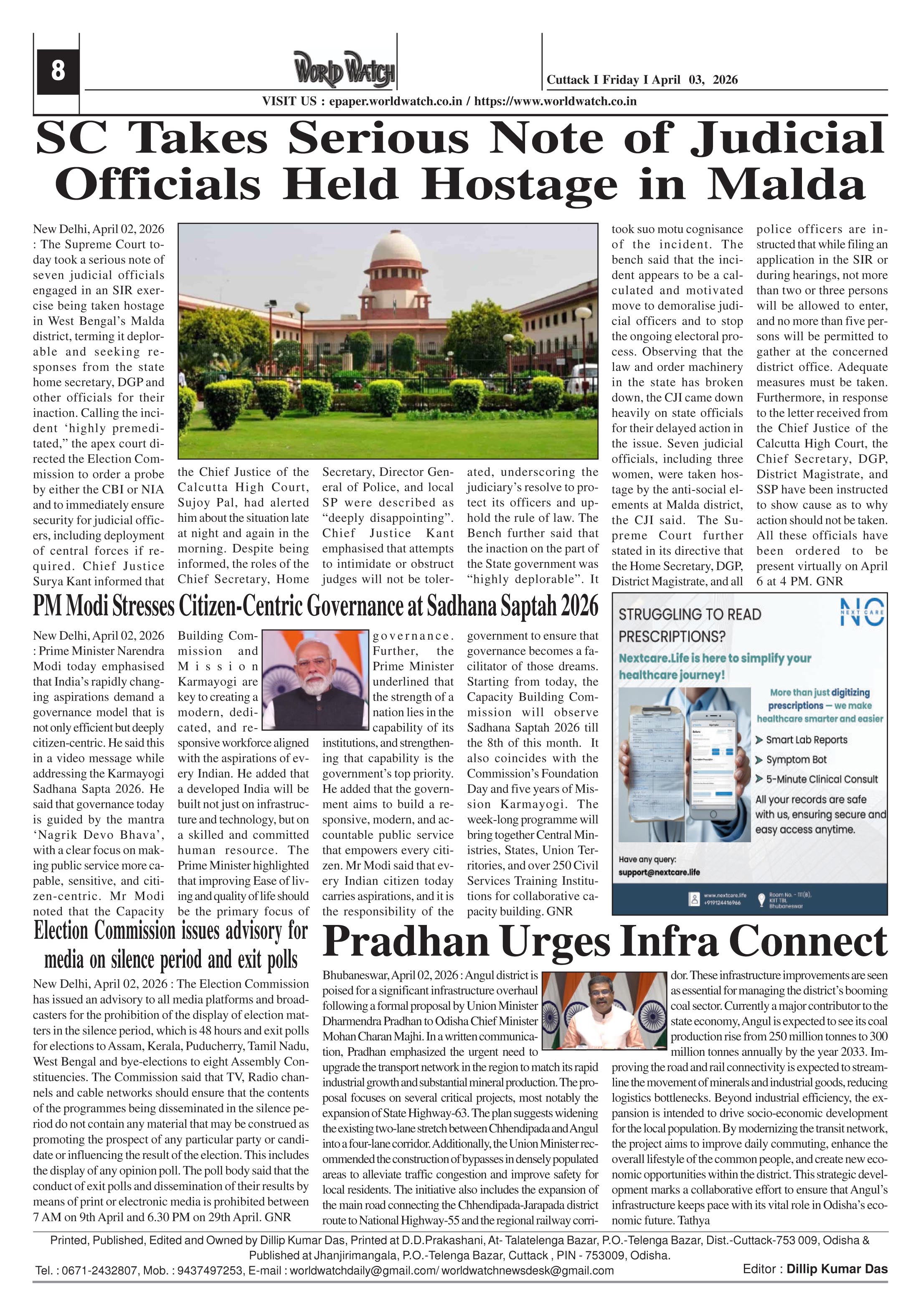World Watch-03-04-2026 Page: 8 April 03, 2026 Tensions in West Asia continue 5 6 7 8 Page 1Page 2Page 3Page 4Page 5Page 6Page 7Page 8 × World Watch-03-04-2026 World Watch Daily 03-04-2026-1World Watch Daily 03-04-2026-2World Watch Daily 03-04-2026-3World Watch Daily 03-04-2026-4World Watch Daily 03-04-2026-5World Watch Daily 03-04-2026-6World Watch Daily 03-04-2026-7World Watch Daily 03-04-2026-8 << First << 8 >> Last >> Page no 1Page no 2Page no 3Page no 4Page no 5Page no 6Page no 7Page no 8