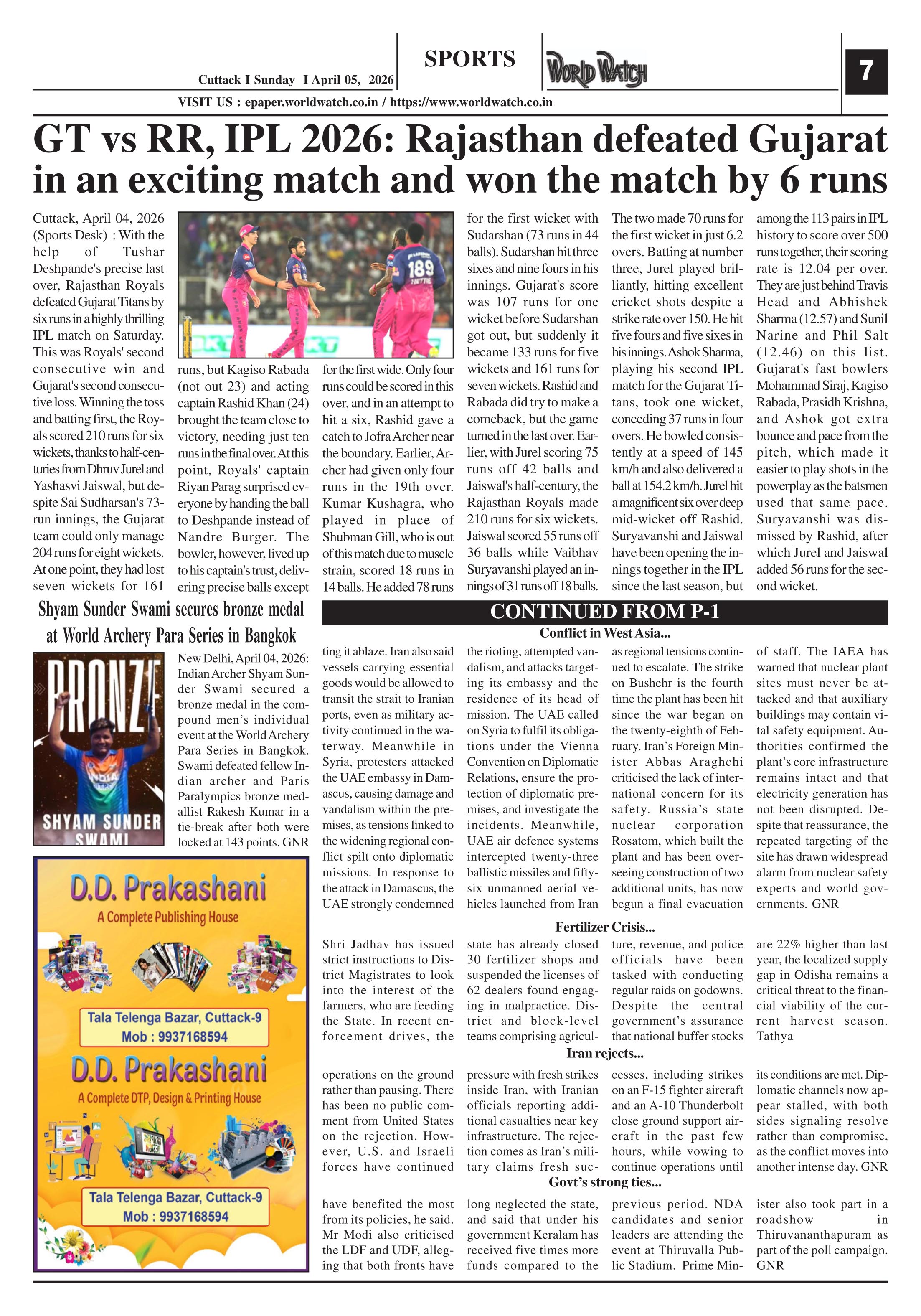 World Watch Page: 7 April 05, 2026 Iran rejects US proposal 4 5 6 7 Page 1Page 2Page 3Page 4Page 5Page 6Page 7 × World Watch World Watch Daily 05-04-2026-1World Watch Daily 05-04-2026-2World Watch Daily 05-04-2026-3World Watch Daily 05-04-2026-4World Watch Daily 05-04-2026-5World Watch Daily 05-04-2026-6World Watch Daily 05-04-2026-7 << First << 7 >> Last >> Page no 1Page no 2Page no 3Page no 4Page no 5Page no 6Page no 7